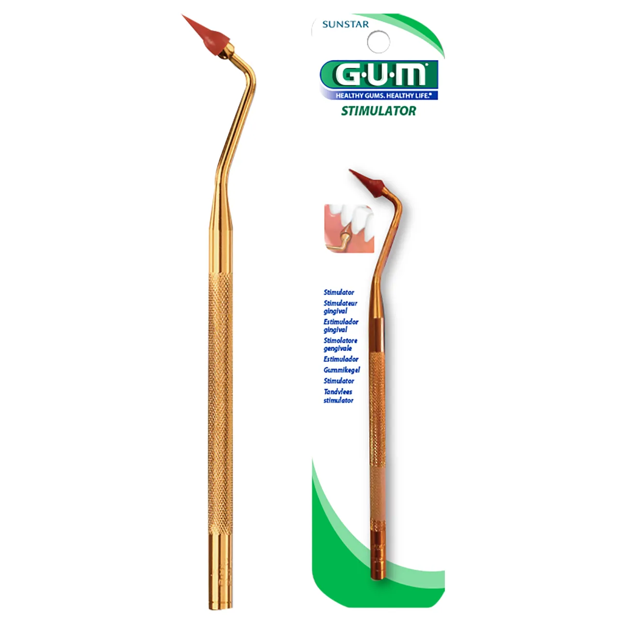 GUM® Stimulator rubber pick for gums has been designed by dental professionals to promote and maintain healthy and firm gums by gently massaging the gums between teeth to stimulate blood flow.